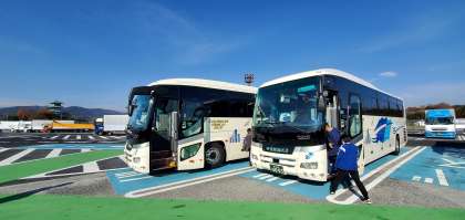 バスに乗車して3時間。少し疲れも見えますが、車内でビデオを鑑賞しながらバスは一路広島をめざします。