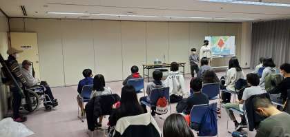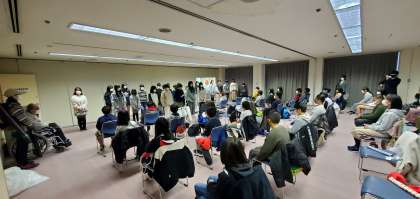 雨天のため、屋外での実施とはなりませんでしたが、屋内に移動してから平和集会を行いました。