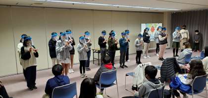 子どもたちは、心をこめてメッセージを発信し、リコーダーを演奏しました。