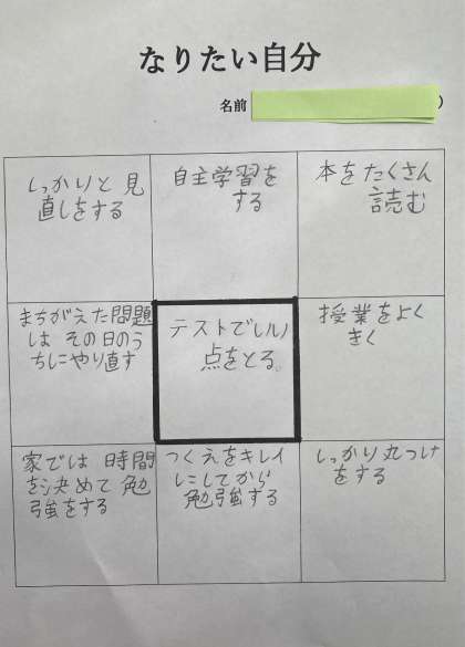 大谷翔平選手のマンダラチャートを参考にして、今年の目標「なりたい自分」について考えました。目標を日々意識してファイト!!