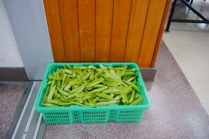 えんどうは旬の時期ですので、調理員さんが朝から生のものをむいて調理してくださいました。