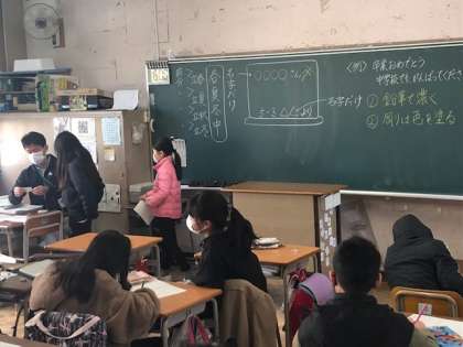 3月で卒業する6年生に向けて、メッセージカードを書いていました。