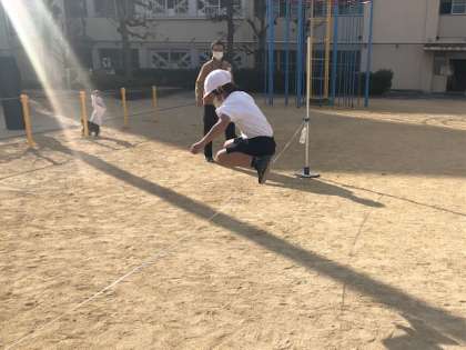 2年生1組・3組(写真1つ目・2つ目)は、国語の学習「おばあちゃんに聞いたよ」、2組(写真3つ目)は体育の走高跳(ゴムとび)をしていました。