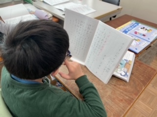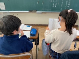 国語科では「ゆうすげ村の小さな旅館−ウサギのダイコン」に取り組んでいます。今日ははじめの感想を書きました。「おもしろかった場面「ふしぎに思った場面」「登場人物への質問」など、思ったことをたくさんノートに書き、友だちどうしで交流することができました。お家での音読の際に、どんなお話なのか聞いてみてあげてください!