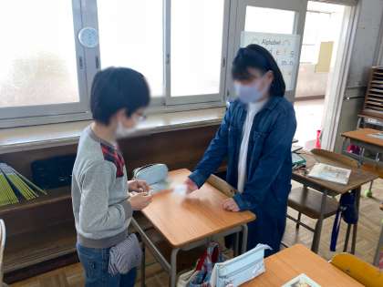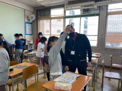 外国語活動では、自己紹介をまじえたゲームをしました。身振り手振り取り組んでいる姿が印象的です!