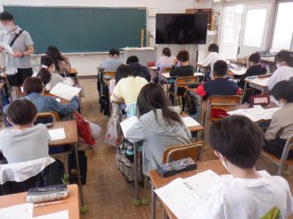 本日、みんなで子どもの育ちを見守る「すくすくウォッチ」を実施しました。3時間目にわくわく問題(教科横断型問題)に取り組みました。あるクラスでは、取り組む前に「わくわくするわー」との声。校長先生からのネバネバ大作戦を胸に問題に取り組めたかな?子どもたちの一生懸命な姿を見てHAPPYになりました。