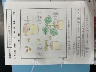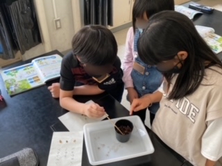 4年生の理科では「植物を育てよう」の学習をしています。ヒョウタン・ヘチマ・ツルレイシの種をそれぞれ観察し、ヒョウタンの種をビニルポットへ植えました。各学級で毎日水やりをしています。