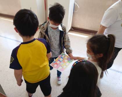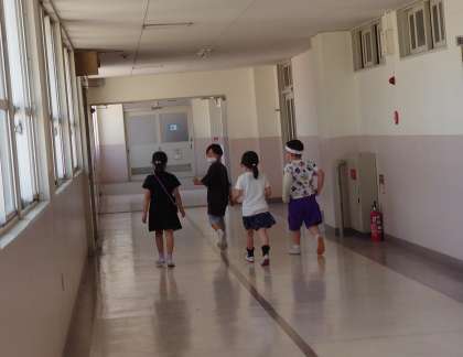 1年生とグループをつくり、学校内をたんけんしました。1年生に寄り添い、優しく案内をする姿がとても頼もしかったです。