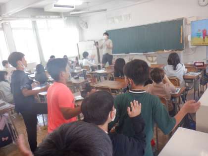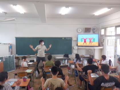 英語科では、教科書を使った学習ももちろんですが、時には英語の歌に合わせて体を動かしています。心も体も解放し、全力で踊る姿を見てHAPPYになりました。