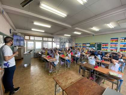 今日の外国語活動では、曜日や教科のことについて学びました。最後には教科の単語を使った「キーワード」にも取り組みました。単語の発音も一人一人がしっかりと声を出していました。ナイス!