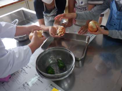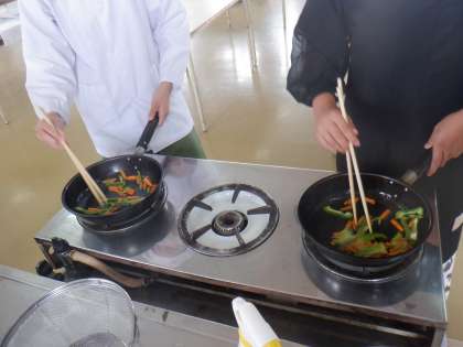 今週は調理実習がありました。家庭科では初めての調理実習で野菜炒めを作りました。「先生、うまく切れたよ!」「もうちょっと薄い方がええかな」「苦手なピーマンちょっと食べれた!」「めっちゃ楽しかった」「家でつくってみよう」「2学期は○○が作りたい!」との声にこちらもHAPPYになりました。ぜひ家でもお子さんに作ってもらってください。