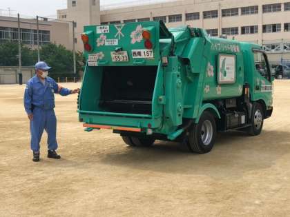 パッカー車へのごみの投入体験をしたりごみの分別クイズをしたりして楽しく学習することができました。