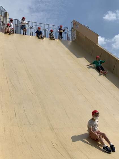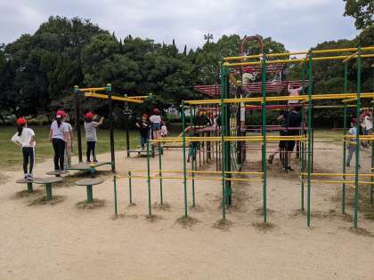 とても大きな滑り台や様々な遊具があり、子どもたちは遊びつくしていました。