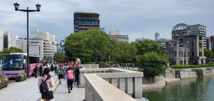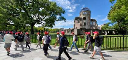 定刻通り、13時に広島平和記念公園に到着しました。特に体調を崩している子どもはいません。
