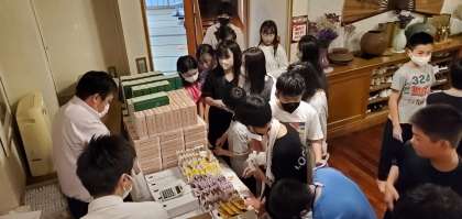 子どもたちは思い思いにお饅頭を購入しています。ご家族の喜ぶ顔を楽しみにしているのではないでしょうか。
