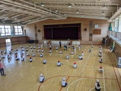 難しい動きもある中で、子どもたちは集中して聞くことができています。