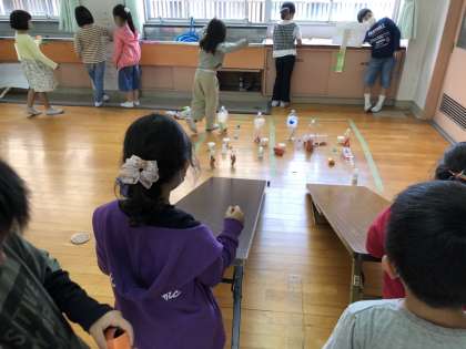 2年生に、おもちゃランドに招待されました。2年生の手作りのおもちゃで遊びました。お土産もいただいて、ハッピー!