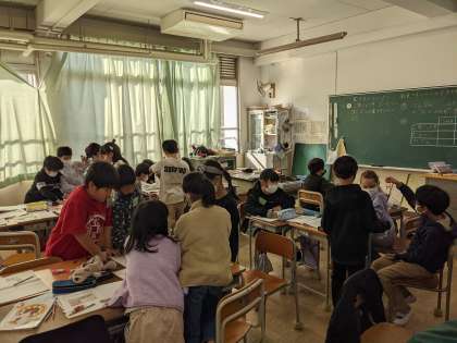 1円玉やブロックをもとにして色々な物の重さを調べました。