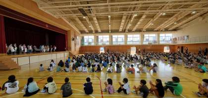 今朝のたてわり集会では、先週の委員会活動委員長の紹介に引き続き、前期の運営委員と学級代表の自己紹介が行われました。