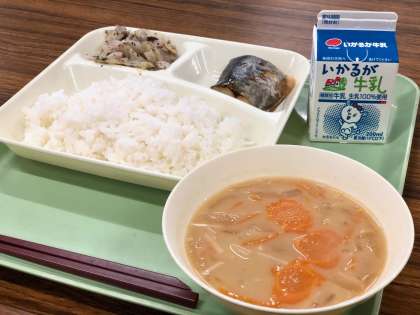 『ごはん・牛乳・さごしののつけ焼き・みそ汁・キャベツの赤じそあえ』でした。