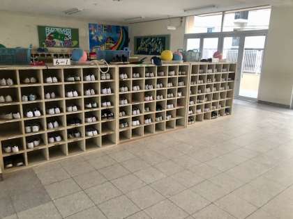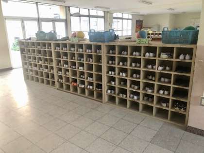放課後に校内をまわっていると・・・下足室の上ぐつが、どの学年もきれいにそろっていました。