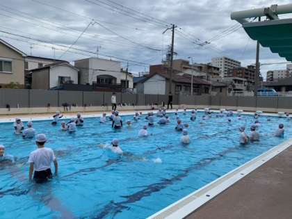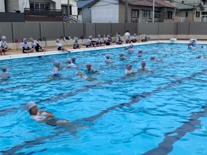 万が一落水したときには、「静かに浮いて待つ」と教わりました。顔だけ水面に出して浮いたり、身近な物を浮き具として使ったり、溺れた人の支え方を練習したりしています。