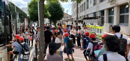 皆さんの温かい笑顔に見守られ、子どもたちも笑顔で依羅小学校をあとにしました。