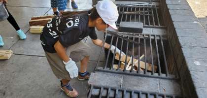 火起こしの後、食材を切る役割、かまどに火をつける役割など、それぞれが分担して手際よく作業を進めました。