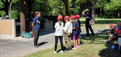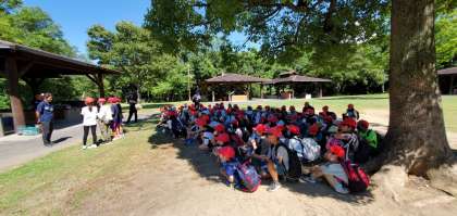 5年生の代表から施設の方にお礼の言葉を述べたのに続き、全員で気持ちの良いご挨拶ができました。