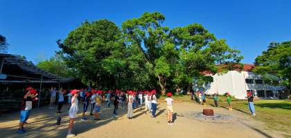 全員で顔を合わせ、ラジオ体操をしたり今後の予定の確認をしたりしました。