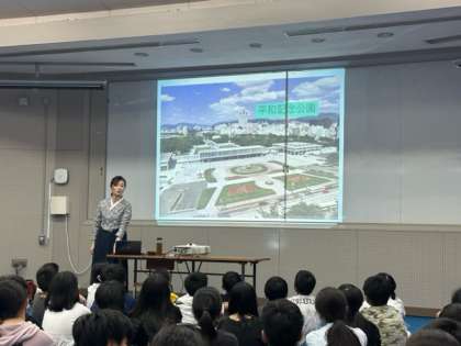 また、ヒロシマへの修学旅行を控えた私たちに向けてのお話も。広島平和記念公園の韓国人原爆犠牲者慰霊碑についての歴史を話していただきました。