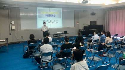 多くの方々にお集まりいただき、校内のようすや本校の教育目標、様々な取組についてご説明させていただきました。