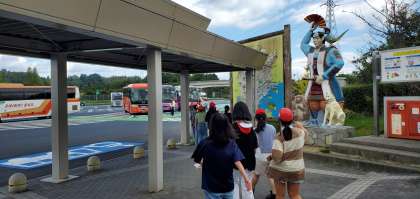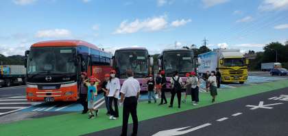 バスから降りた子どもたちは、伸びをしたり友達と話したりして、束の間の休憩時間を過ごしました。