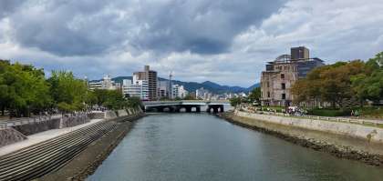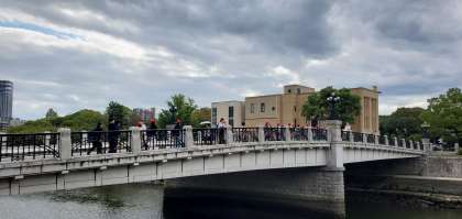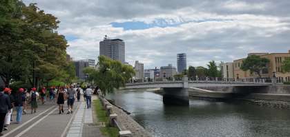 元安川を渡り、「原爆の子の像」まで向かう様子です。
