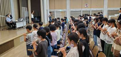 江種祐司さんのお話の後、6年生全員からお礼として、リコーダー「青い空は」を演奏しました。