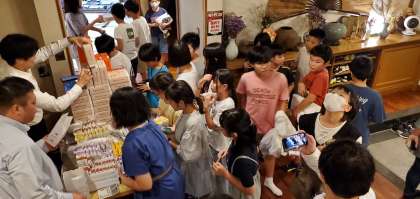 夕食後は、時間を区切って入浴とお土産のもみじ饅頭を購入する時間です。