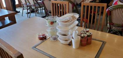 子どもたちが去った昼食会場のテーブルに目をやると……それぞれが容器等をまとめ、後片付けを励行していました。