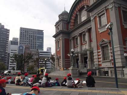 中央公会堂へ写生会に行きました。「難しいな」と苦戦しながらも細かい部分などをしっかりと見て描くことができていました。通行人の方から「とても上手に描けているね」とほめられるほどの素晴らしい仕上がりに、子どもたちは満足そうにしていました。