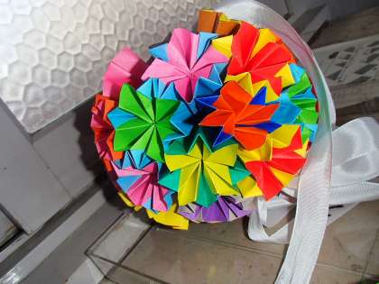 「わたし、赤色の折ったよ。」