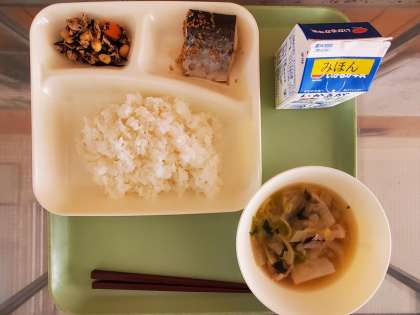11月24日(金) ごはん、牛乳、さごしのごまじょうゆかけ うすくず汁 大豆の煮物 です。おいしくいただきました。