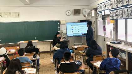 1組は理科室で理科の学習、2組は卒業アルバムのクラスのページや個人の文集の作成など、3組はC-netの先生と共に英語の学習をしていました。