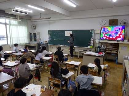 1組は、図工「にらみねこ」のパスを使った色塗り。