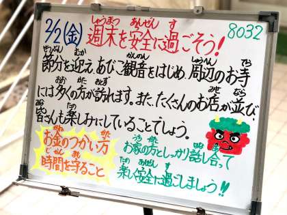 学校では「今日、家族で我孫子観音行くねん!」と、節分祭についての楽しい話題が聞こえてきました。