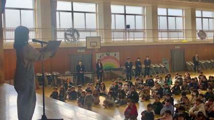 今年度をもって依羅小学校を去られる教職員の方々の紹介とあいさつがありました。こちらについては、春休み中にも転勤等が決まることもあることから、3月29日(金)にも改めて「離任式」行います。詳しくは先日配付したお手紙や学年だより{春休み号}にてご確認ください。