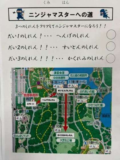 明日14日(火)の遠足では、班で協力してニンジャマスターを目指しましょう!
