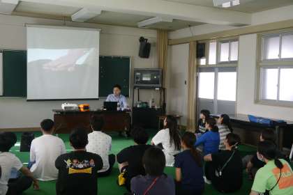 教頭先生を講師にお招きし、前半は水泳指導について講話してもらいました。