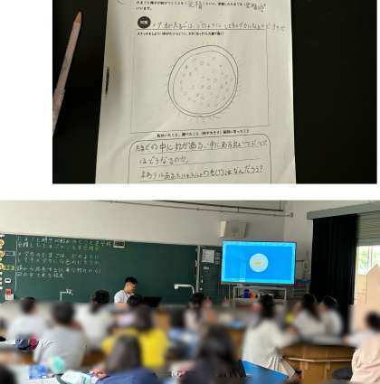 メダカの受精卵をスケッチしたり、受精の様子を動画で見たりしました。