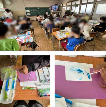 2組では、図画工作の授業で「こころのもよう」に取り組みました。