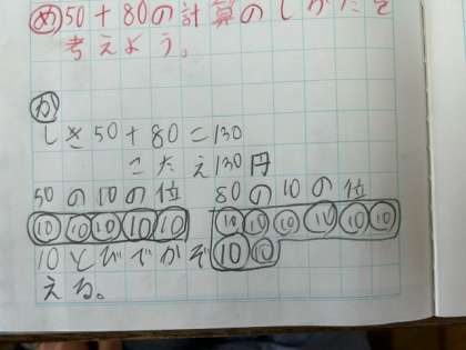 6月20日(木)2年「50+80」の計算の仕方を考えよう