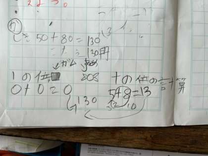 50+80の計算の仕方を考える場面では、自分の考えをノートにしっかりとまとめることができました。